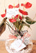 Kokedama de Mini Anthurium rojo adornado de navidad en base de cristal.